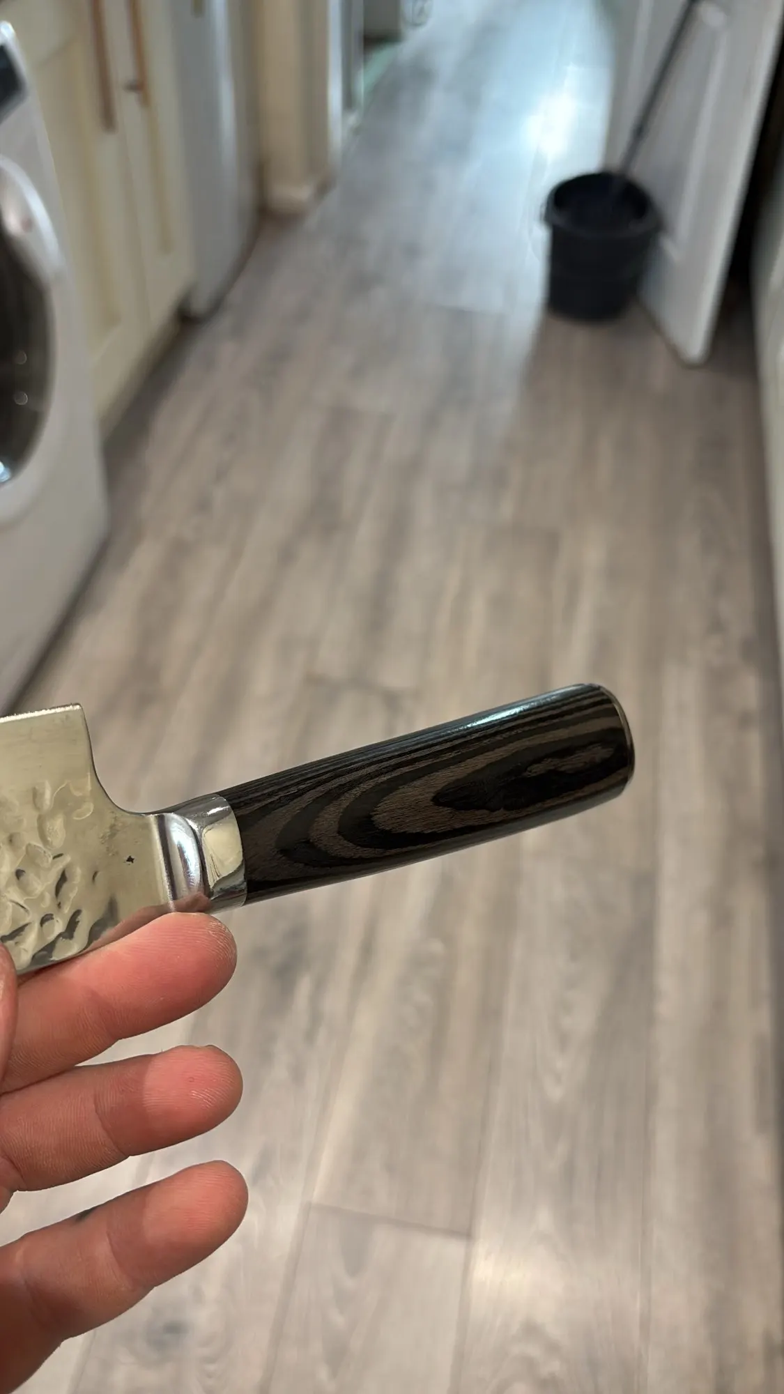 Difficile de distinguer l'impression Damas sur la lame – elle coupe bien, et la prise en main est agréable. À utiliser sans hésiter, pas mal pour le prix.
