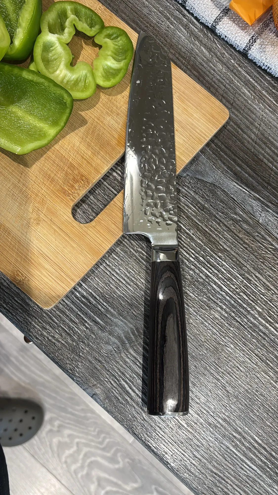 Treat yourself to the excellence of Japanese tradition with this hand-forged Kiritsuke chef's knife , designed for discerning cooks. Made from high-carbon stainless steel, it combines precision, power, and elegance , allowing you to slice meats, vegetables, fish, or fruit with astonishing ease.