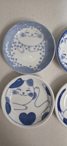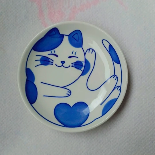 1 ou 4x Soucoupes à sauce en porcelaine motif chat (10 x 2 cm)