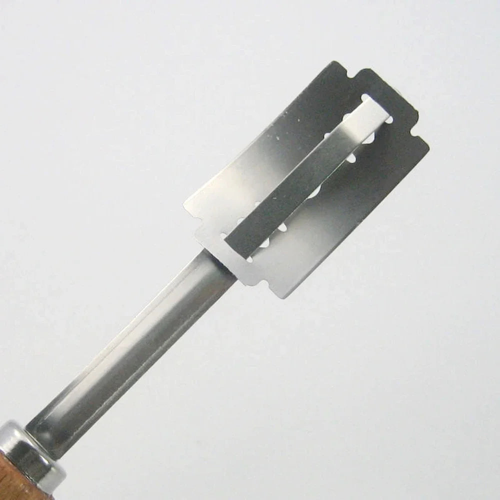 Grignette de Boulanger – Lame Inox 304, Manche Bois Long, Étui Cuir + 5 Lames