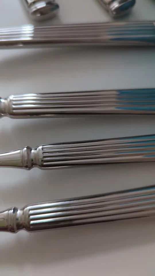 Service de couverts inox gravés – Set cuillère, fourchette, couteau