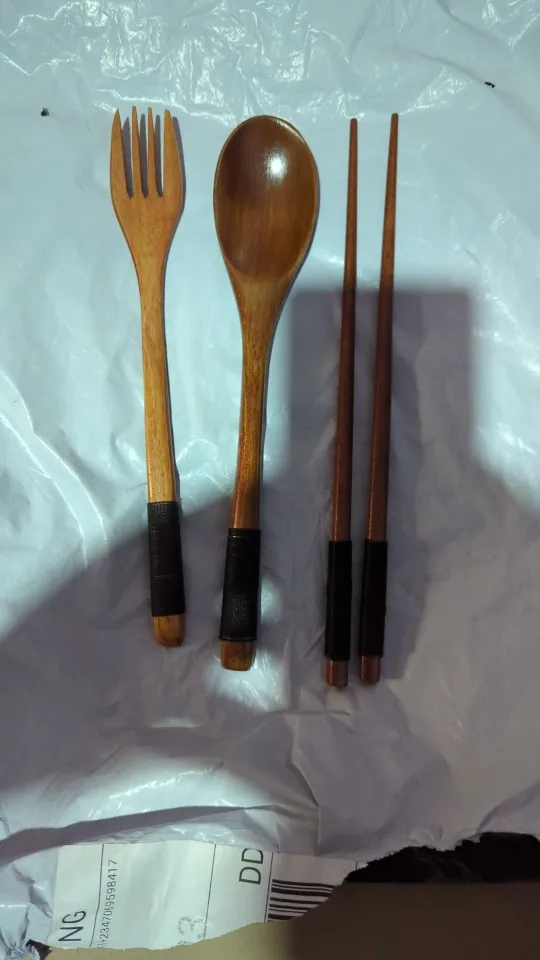 Set de Couverts en Bois 3 Pièces – Cuillère, Fourchette, Baguettes